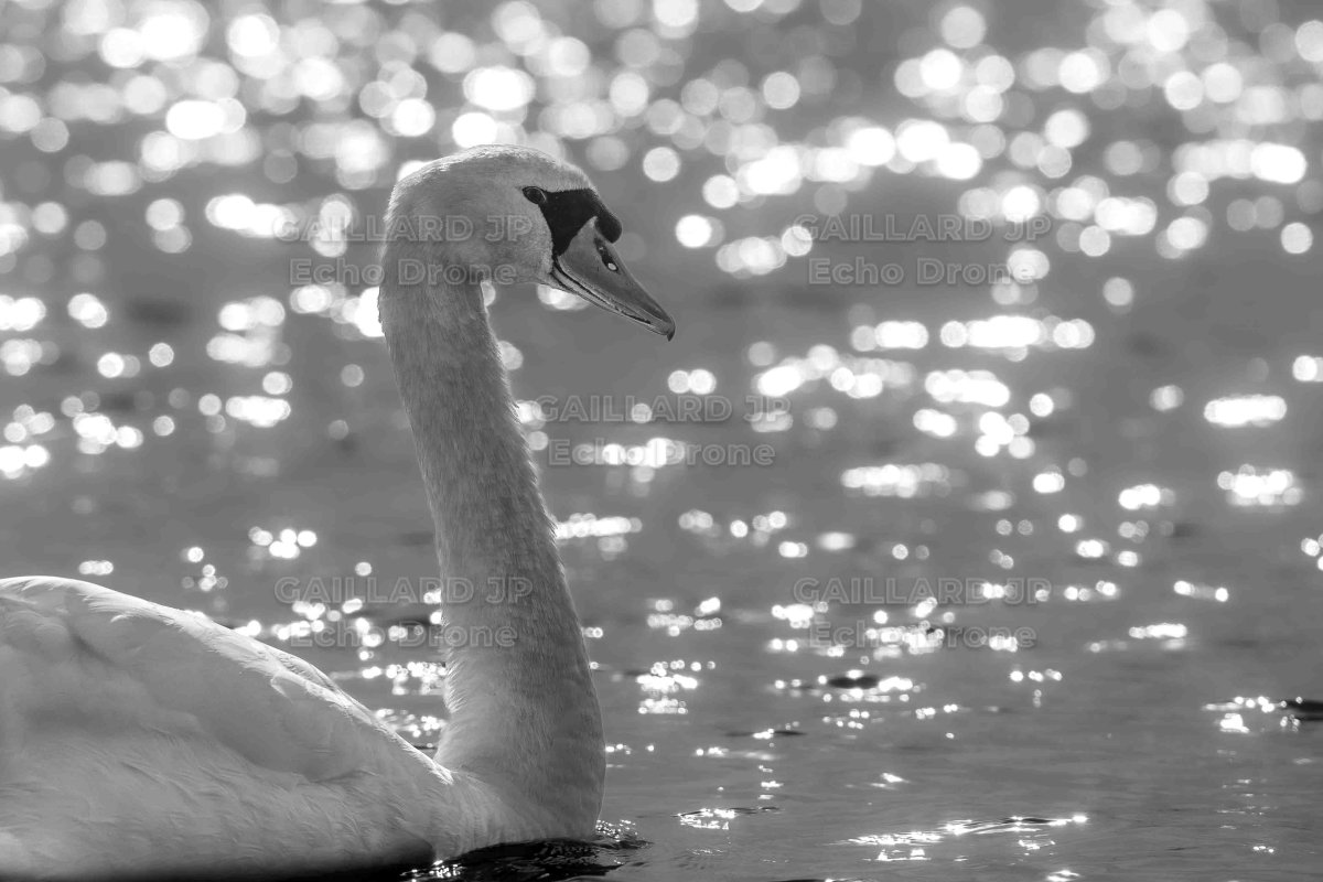 Cygne tuberculé (Cygnus olor) et reflets scintillants — Oiseau, Noir et blanc, Lumière, Nature, photo nature