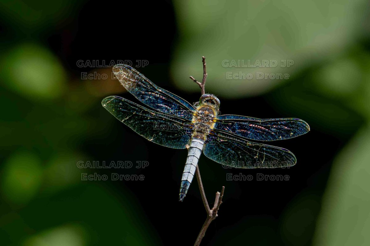 Libellule bleue aux ailes déployées – Faune des étangs de la Drôme