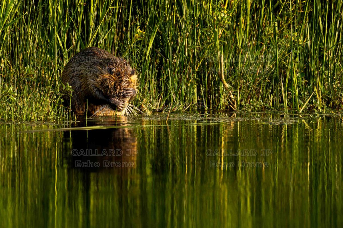 Toilettage du Castor d'Europe au crépuscule - Drôme